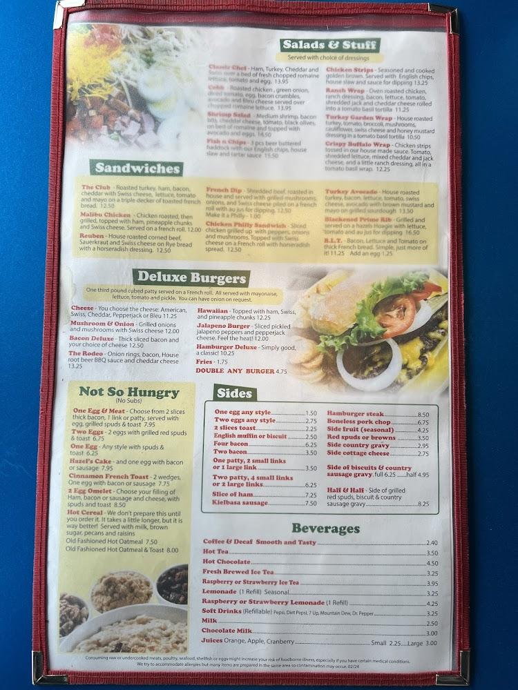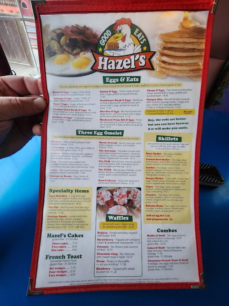 Hazel's Good Eats offers a diverse and satisfying menu, focusing on American comfort food. Breakfast steals the spotlight with eggs, omelets, and hearty skillets. For those looking to share, small plates of waffles and cakes are perfect. Specialty items like Eggs Benedict and Garbage Spuds cater to adventurous palates. The lunch options are just as inviting, featuring sandwiches, burgers, and fresh salads. Simplicity meets taste, with ingredients sourced for quality. The expanding beverage menu complements every meal, rounding out a wholesome dining experience.